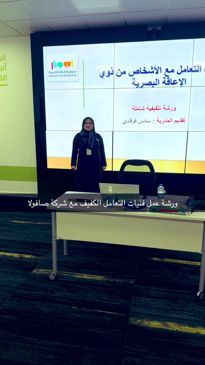 الخاصة بتدريب الجهات و الفرق التطوعية لفنيات التعامل مع ذوي الإعاقة البصرية ، أقامت جمعية #إبصار ورشة عمل " فنيات التعامل مع الكفيف"